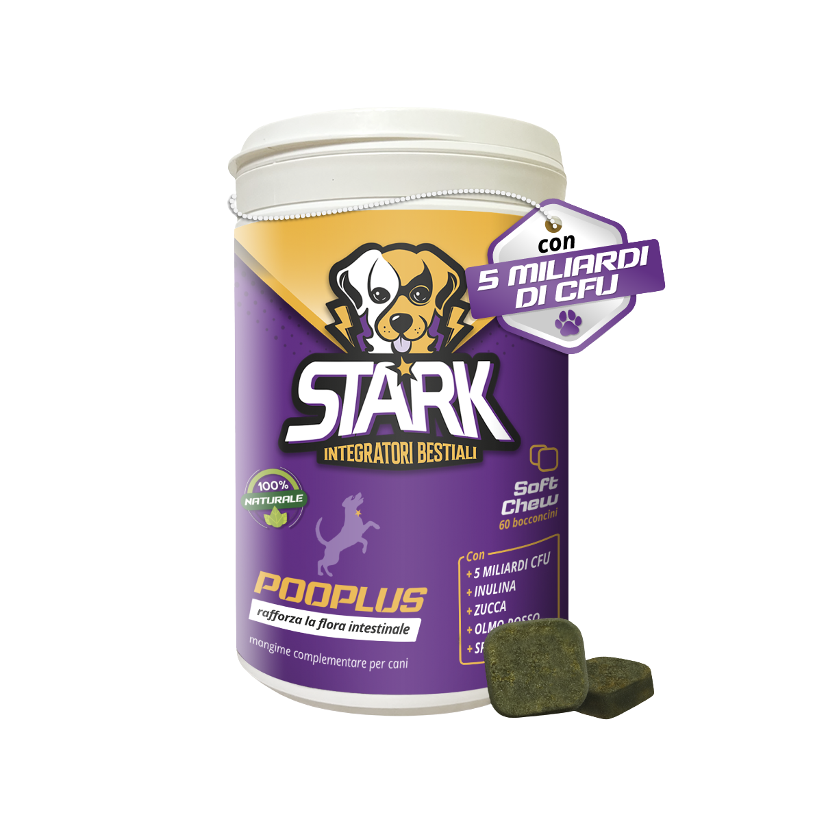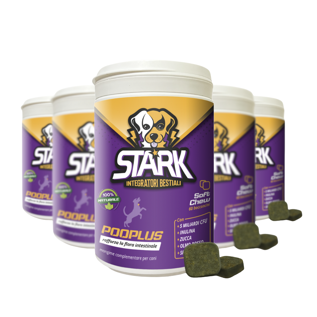 Il Pooplus è stato formulato tenendo a mente che per aiutare a ripristinare l'equilibrio dell'intestino del cane, bisogna sostenere i batteri buoni e creare un ambiente ostile per quelli cattivi. Una miscela bilanciata di probiotici, prebiotici, fibre funzionali e ingredienti naturali come la zucca e l'olmo rosso aiuta a migliorare la digestione, l'assorbimento e il benessere generale del tuo cane.